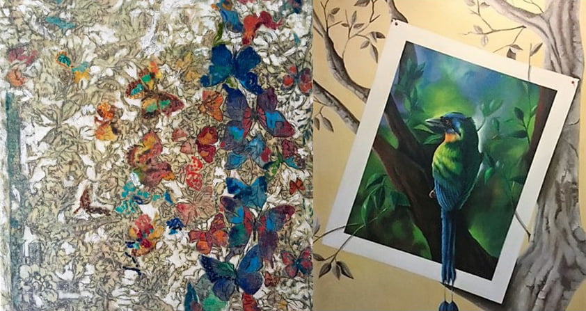La artista Margarita Solís desarrolla el tema de las aves, mientras que Daniela Vargas desarrolla el tema de las mariposas en las obras de la exposición.