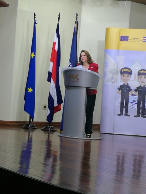 Pelayo Castro, Embajador de la Unión Europea en Costa Rica, señaló que por medio del proyecto Prosec (Programa de Seguridad Ciudadana) han colaborado con el Ministerio de Seguridad, reconoce los esfuerzos de la cartera por mejorar las condiciones de las mujeres, la igualdad y la equidad es un trabajo de todos y que ahora el nuevo modelo no busca policías más rudos, sino empáticos y con don de gentes.