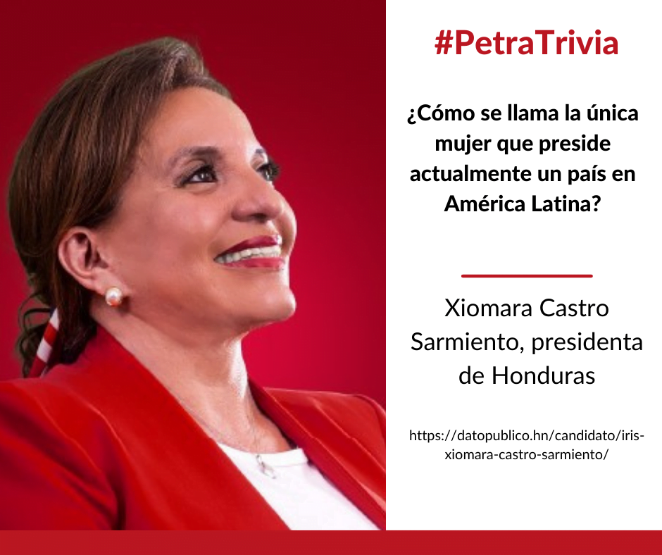ACTUALIDAD ¿Cómo se llama la única mujer que preside actualmente un país en América Latina? Por Redacción Petra - sábado, 2 de julio de 2022 FacebookTwitterPinterestWhatsAppTelegram Anuncios Descúbralo aquí Anuncios