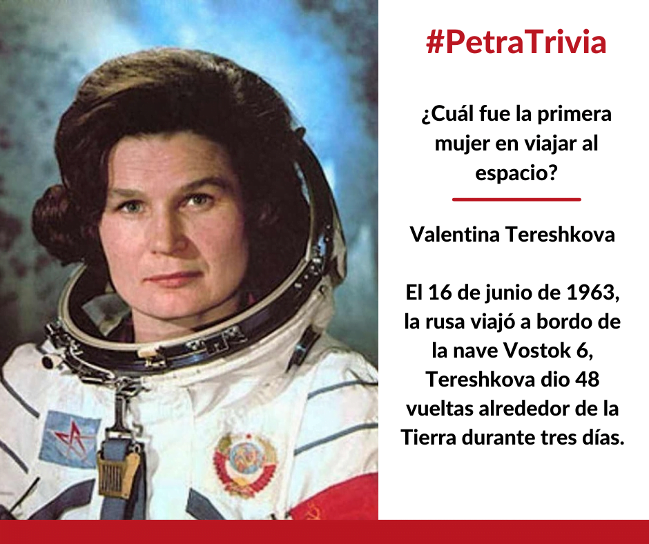 ACTUALIDAD ¿Cuál fue la primera mujer en viajar al espacio? Por Redacción Petra - sábado, 21 de mayo de 2022 FacebookTwitterPinterestWhatsAppTelegram Anuncios Descúbralo aquí Anuncios
