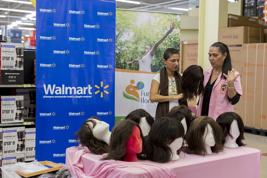 Walmart de México y Centroamérica entregó una donación de 50 pelucas a FUNDESO, esto con el fin de apoyar a las mujeres con cáncer de seno que sufren la caída de cabello en el proceso de quimioterapia.