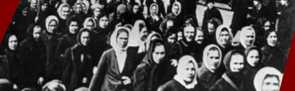 NOTI-FEM El 8 de marzo del 1917 Por Redacción Petra - miércoles, 29 de marzo de 2023 FacebookTwitterPinterestWhatsAppTelegram Anuncios En Rusia da inicio la Revolución de Febrero El 8 de marzo del 1917, en Rusia, da inicio la Revolución de Febrero con una manifestación con motivo del Día Internacional de la Mujer Trabajadora. Anuncios