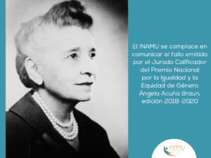 El Instituto Nacional de las Mujeres y el Jurado Calificador del Premio Nacional por la Igualdad y Equidad de Género Ángela Acuña Braun, edición 2018-2020, anuncian que el periódico La Voz de Guanacaste ha sido acreedor del Premio, por la autoría de una serie de artículos periodísticos sobre los derechos humanos de las mujeres guanacastecas. Asimismo, distingue a la periodista Ángela Arias Molina con una mención honorífica por la serie radiofónica “Pero si lo digo yo”.