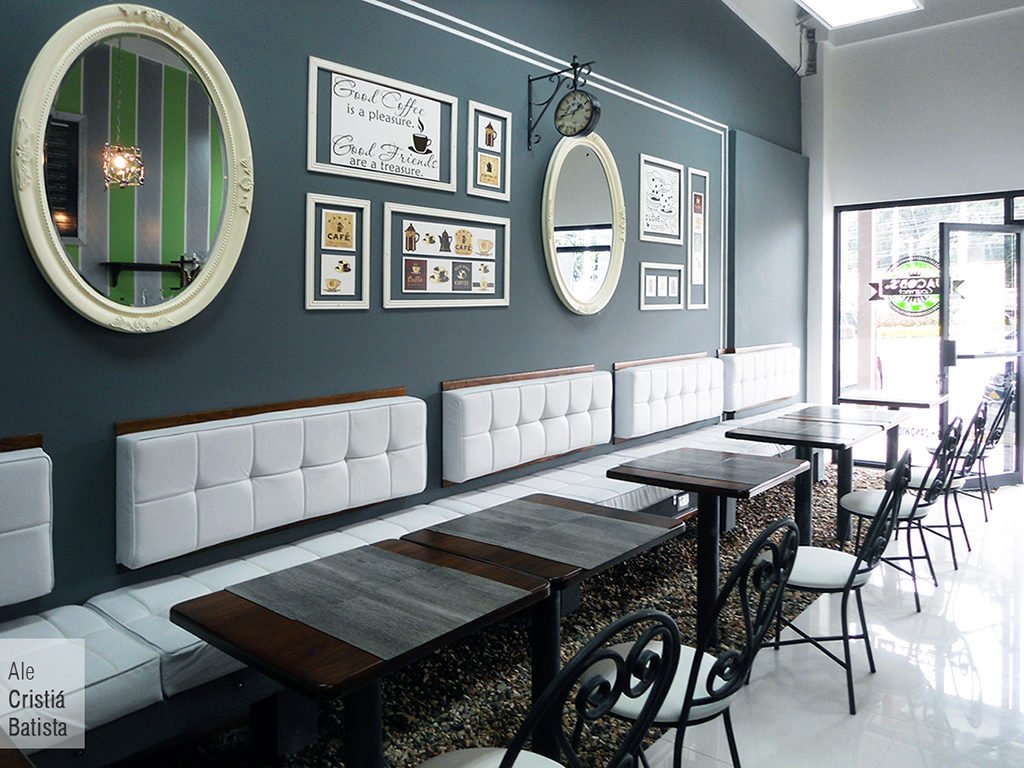 Con un diseño «vintage tropical» realizado por el arquitecto Alejandro Cristiá (INTRIBE Architects), en donde se destacan paredes color menta, con mobiliario blanco, acompañado de hierro forjado y maderas oscuras, emerge Jacob’s Gourmet Coffee Bar, en el Centro Comercial La Quinta, en Heredia, continuo a Jardines del Recuerdo. Para complementar, los trabajos de pintura y adornos de pared, y las lámparas fueron hechas por una decoradora.