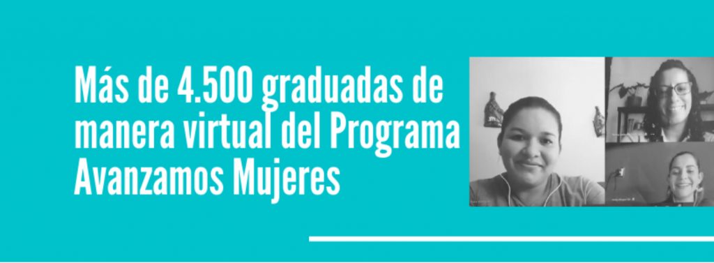 Al igual que doña Vilma, más de 4.500 mujeres concluyeron el primer proceso de formación humana virtual del programa Avanzamos Mujeres, que busca garantizar el mejoramiento en las condiciones de vida de las mujeres en situación de pobreza y vulnerabilidad social, a través de un proceso de formación integral con temas como patriarcado, género, derechos sexuales y reproductivos, derechos humanos, liderazgo transformador, organización y derecho a una vida libre de violencia.