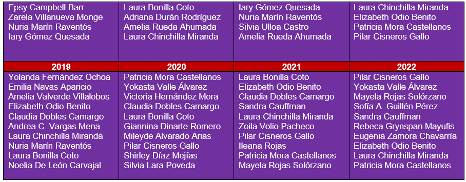 Situación similar es la de Emilia Navas Aparicio, ex Fiscal General de la República de Costa Rica, la única que en dos ocasiones (2017 y 2018) ha encabezado la lista, desapareció del panorama público del país, cayendo en el olvido sin ninguna mención como candidata a la lista.