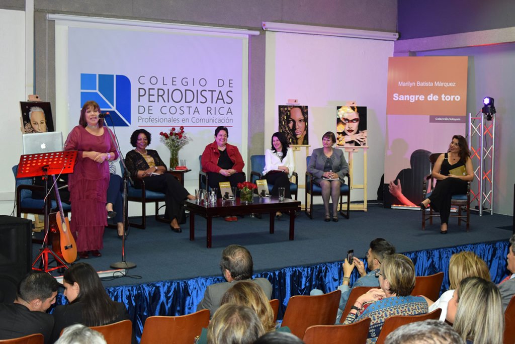 “Laura Chinchilla Miranda, ex Presidenta de la República de Costa Rica, brindó las palabras de inauguración destacando el aporte de la autora de Sangre de Toro, Marilyn Batista Márquez, a la literatura feminista, de denuncia a través de relatos de historias que develan el discrimen de género”.